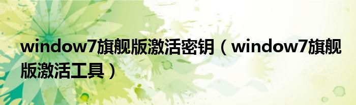 大家好,雨雨来为大家解答以上问题,window7旗舰版激活密钥,window7旗舰版激活工具很多人还不知道,现在让我们一起来看看吧!