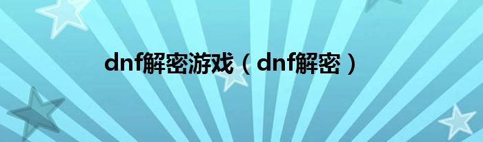 大家好,雨雨来为大家解答以上问题,dnf解密游戏,dnf解密很多人还不知道,现在让我们一起来看看吧!
