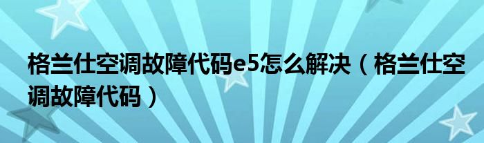 大家好,雨雨来为大家解答以上问题,格兰仕空调故障代码e5怎么解决,格兰仕空调故障代码很多人还不知道,现在让我们一起来看看吧!