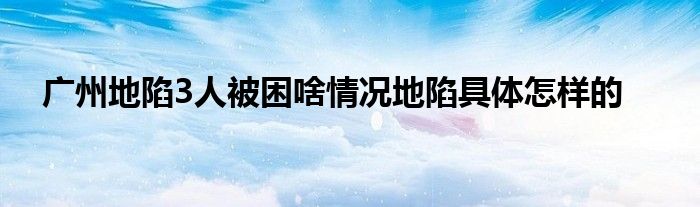 大家好.我是互联百科的羽儿,现在为大家解决以上广州地陷3人被困啥情况地陷具体怎样的的问题.
