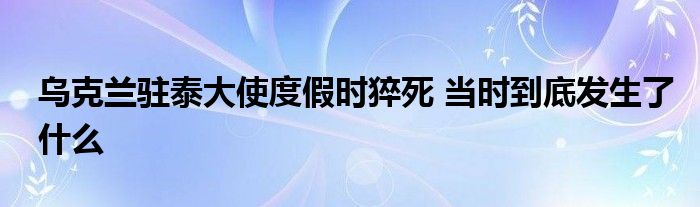 大家好.我是互联百科的羽儿,现在为大家解决以上乌克兰驻泰大使度假时猝死 当时到底发生了什么的问题.