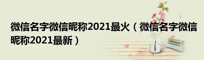 一波最新颖独特的网名来了。今天,我和边肖分享一组好听的个性网名。2021年,新的一年,新气象,新网名都来了。