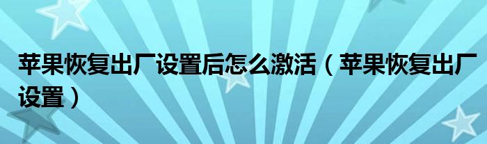 大家好,雨雨来为大家解答以上问题,苹果恢复出厂设置后怎么激活,苹果恢复出厂设置很多人还不知道,现在让我们一起来看看吧!