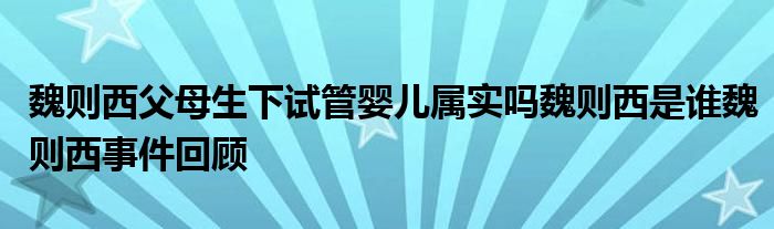 1、魏则西父母生下试管婴儿