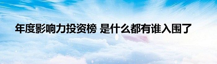年度影响力投资榜 是什么都有谁入围了