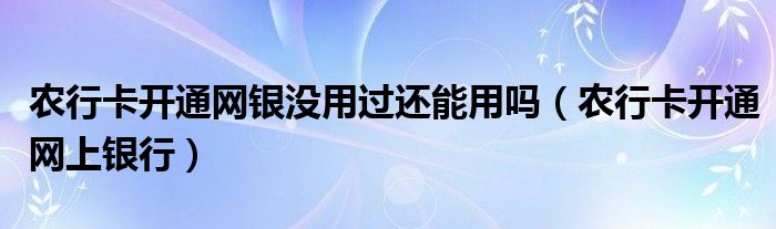 大家好,雨雨来为大家解答以上问题,农行卡开通网银没用过还能用吗,农行卡开通网上银行很多人还不知道,现在让我们一起来看看吧!