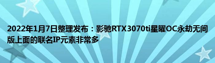 影驰RTX3070ti星曜OC永劫无间版背面的金属散热背面也是经过重新设计,和外包装盒一样,也是宁红夜。看到这个设计,我的小伙伴甚至都不想垂直放置显卡了。