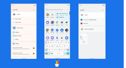 一个例子是,如果您输入相机,您会看到“拍摄视频”、“自拍”等选项。这将节省您一些时间,因为它减少了获取您想要的应用程序或设置的步骤做。它在为您提供结果和选项方面似乎也非常快。搜索栏使用AppSearchAPI,它实际上是一个离线和设备上的搜索库。开发人员可以将其集成到各自的应用程序中。
