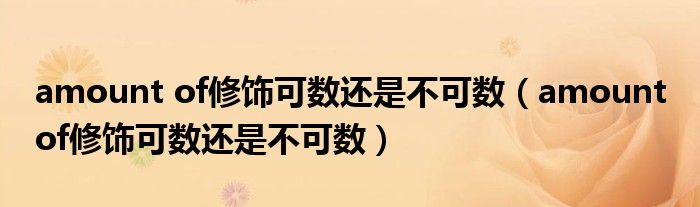 关于amount of修饰可数还是不可数,amount of修饰可数还是不可数这个很多人还不知道,今天菲菲来为大家解答以上的问题,现在让我们一起来看看吧!