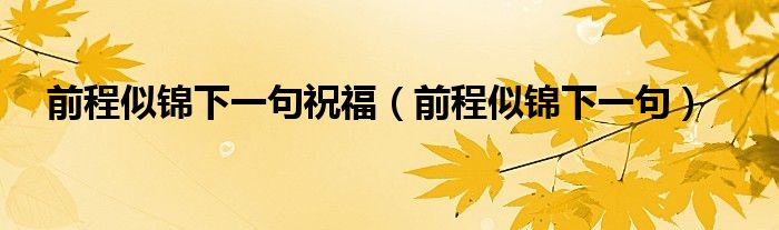 关于前程似锦下一句祝福,前程似锦下一句这个很多人还不知道,今天菲菲来为大家解答以上的问题,现在让我们一起来看看吧!