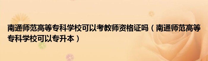 关于南通师范高等专科学校可以考教师资格证吗,南通师范高等专科学校可以专升本这个很多人还不知道,今天菲菲来为大家解答以上的问题,现在让我们一起来看看吧!