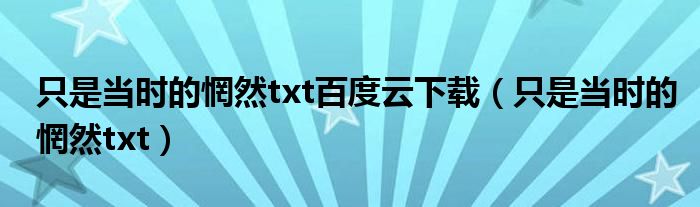 关于只是当时的惘然txt百度云下载,只是当时的惘然txt这个很多人还不知道,今天菲菲来为大家解答以上的问题,现在让我们一起来看看吧!