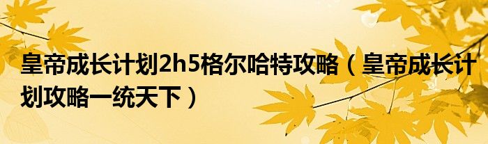 关于皇帝成长计划2h5格尔哈特攻略,皇帝成长计划攻略一统天下这个很多人还不知道,今天菲菲来为大家解答以上的问题,现在让我们一起来看看吧!