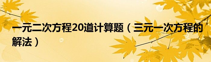 关于一元二次方程20道计算题,三元一次方程的解法这个很多人还不知道,今天菲菲来为大家解答以上的问题,现在让我们一起来看看吧!