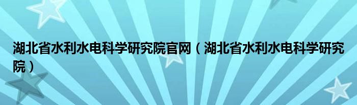 湖北省水利水电科学研究院官网(湖北省水利水电科学研究院)