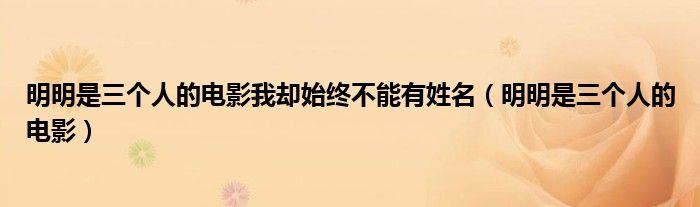 关于明明是三个人的电影我却始终不能有姓名,明明是三个人的电影这个很多人还不知道,今天菲菲来为大家解答以上的问题,现在让我们一起来看看吧!