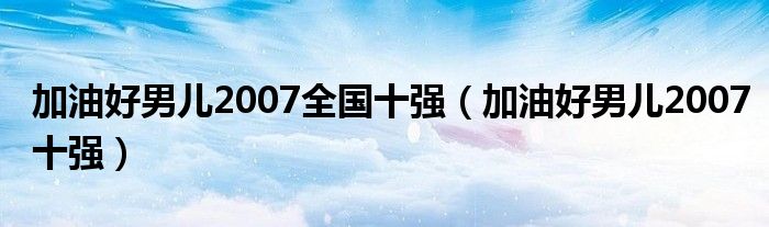 加油好男儿2007全国十强(加油好男儿2007十强)
