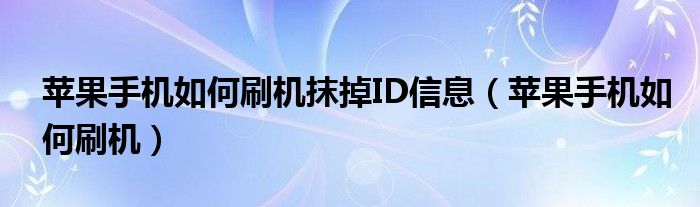 大家好,小晋来为大家解答以下问题,关于苹果手机如何刷机抹掉ID信息,苹果手机如何刷机很多人还不知道,今天让我们一起来看看吧!