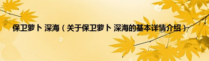 保卫萝卜 深海(关于保卫萝卜 深海的基本详情介绍)