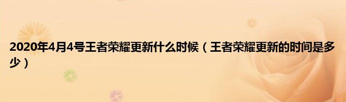 2020年4月4号王者荣耀更新什么时候(王者荣耀更新的时间是多少)