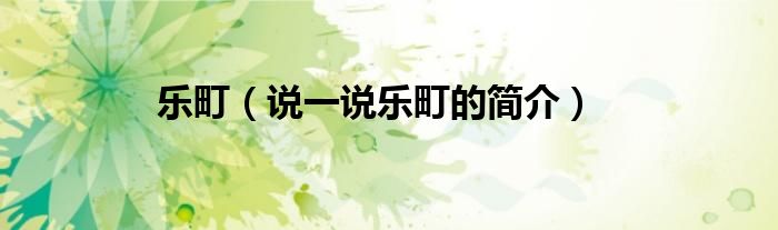 夏弥来为大家解答以下的问题,乐町,说一说乐町的简介,现在让我们一起来看看吧!