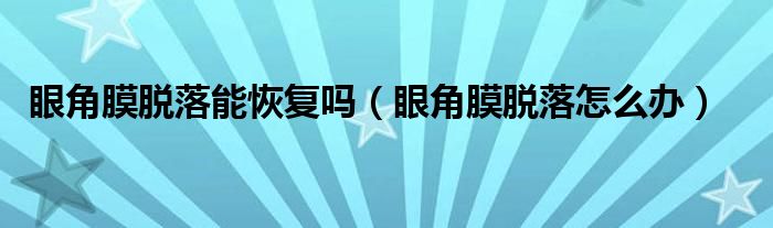 大家好,乐天来为大家解答以下的问题,眼角膜脱落能恢复吗,眼角膜脱落怎么办很多人还不知道,现在让我们一起来看看吧!