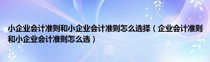 小企业会计准则和小企业会计准则怎么选择(企业会计准则和小企业会计准则怎么选)