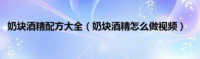 关于奶块酒精配方大全,奶块酒精怎么做视频这个很多人还不知道,今天菲菲来为大家解答以上的问题,现在让我们一起来看看吧!