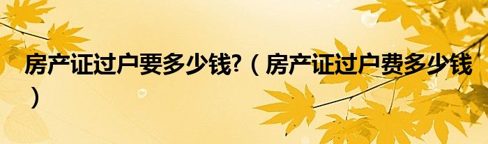 关于房产证过户要多少钱?,房产证过户费多少钱这个很多人还不知道,今天菲菲来为大家解答以上的问题,现在让我们一起来看看吧!