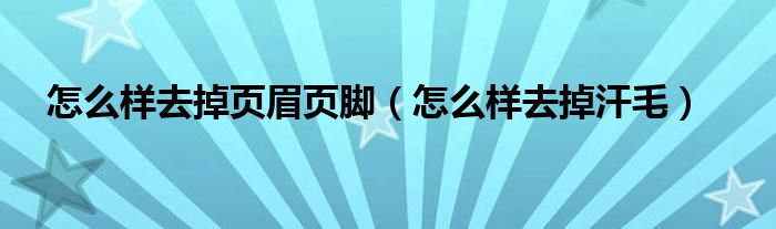 怎么样去掉页眉页脚(怎么样去掉汗毛)