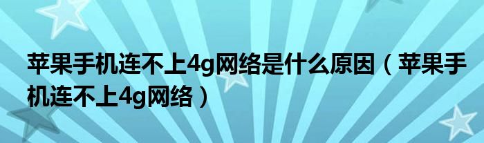 关于苹果手机连不上4g网络是什么原因,苹果手机连不上4g网络这个很多人还不知道,今天菲菲来为大家解答以上的问题,现在让我们一起来看看吧!
