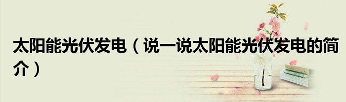夏弥来为大家解答以下的问题,太阳能光伏发电,说一说太阳能光伏发电的简介,现在让我们一起来看看吧!
