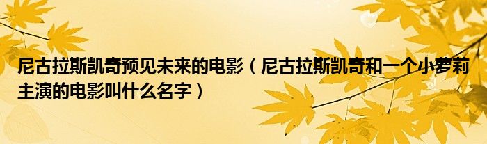 关于尼古拉斯凯奇预见未来的电影,尼古拉斯凯奇和一个小萝莉主演的电影叫什么名字这个很多人还不知道,今天菲菲来为大家解答以上的问题,现在让我们一起来看看吧!