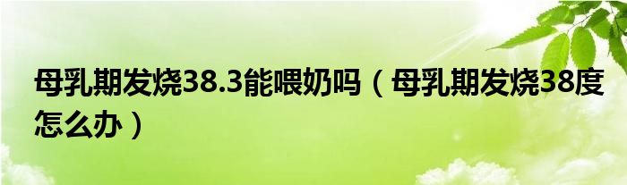 大家好,乐天来为大家解答以下的问题,母乳期发烧38.3能喂奶吗,母乳期发烧38度怎么办很多人还不知道,现在让我们一起来看看吧!