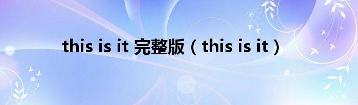 关于this is it 完整版,this is it这个很多人还不知道,今天菲菲来为大家解答以上的问题,现在让我们一起来看看吧!