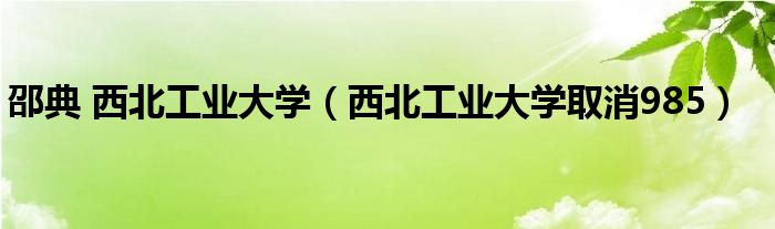 关于邵典 西北工业大学,西北工业大学取消985这个很多人还不知道,今天菲菲来为大家解答以上的问题,现在让我们一起来看看吧!