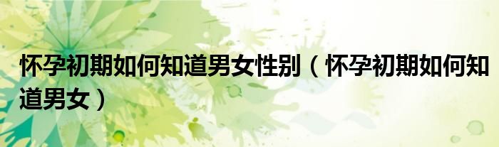 关于怀孕初期如何知道男女性别,怀孕初期如何知道男女这个很多人还不知道,今天菲菲来为大家解答以上的问题,现在让我们一起来看看吧!