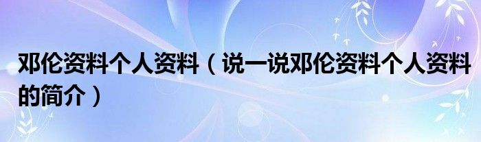 夏弥来为大家解答以下的问题,邓伦资料个人资料,说一说邓伦资料个人资料的简介,现在让我们一起来看看吧!