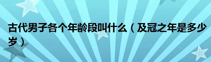 关于古代男子各个年龄段叫什么,及冠之年是多少岁这个很多人还不知道,今天菲菲来为大家解答以上的问题,现在让我们一起来看看吧!