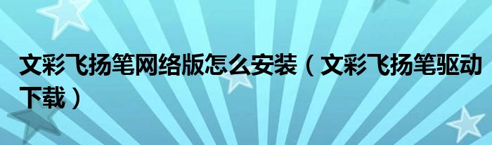 关于文彩飞扬笔网络版怎么安装,文彩飞扬笔驱动下载这个很多人还不知道,今天菲菲来为大家解答以上的问题,现在让我们一起来看看吧!