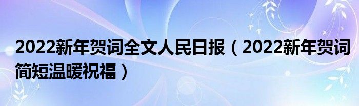 大家好,乐儿来为大家解答以下问题,2022新年贺词全文人民日报,2022新年贺词简短温暖祝福很多人还不知道,现在让我们一起来看看吧!