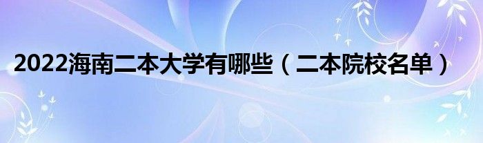 大家好,乐儿来为大家解答以下问题,2022海南二本大学有哪些,二本院校名单很多人还不知道,现在让我们一起来看看吧!