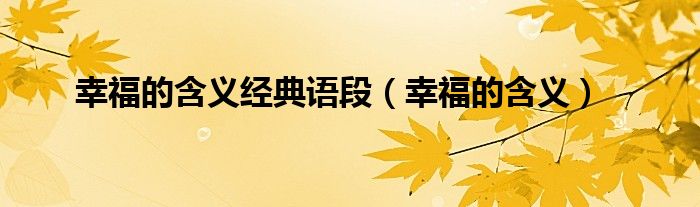 关于幸福的含义经典语段,幸福的含义这个很多人还不知道,今天菲菲来为大家解答以上的问题,现在让我们一起来看看吧!