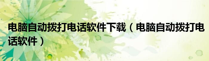 电脑自动拨打电话软件下载(电脑自动拨打电话软件)