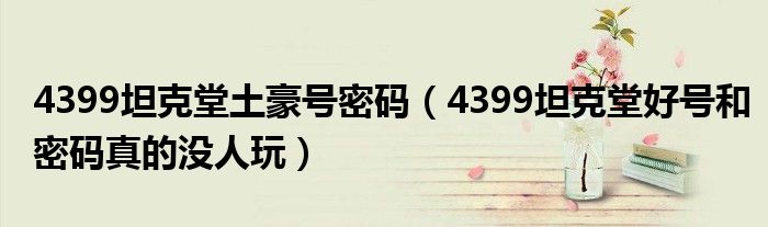 4399坦克堂土豪号密码(4399坦克堂好号和密码真的没人玩)