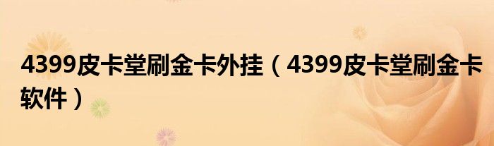 关于4399皮卡堂刷金卡外挂,4399皮卡堂刷金卡软件这个很多人还不知道,今天菲菲来为大家解答以上的问题,现在让我们一起来看看吧!
