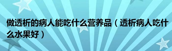 大家好,乐天来为大家解答以下的问题,做透析的病人能吃什么营养品,透析病人吃什么水果好很多人还不知道,现在让我们一起来看看吧!