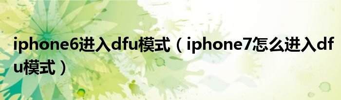 关于iphone6进入dfu模式,iphone7怎么进入dfu模式这个很多人还不知道,今天菲菲来为大家解答以上的问题,现在让我们一起来看看吧!