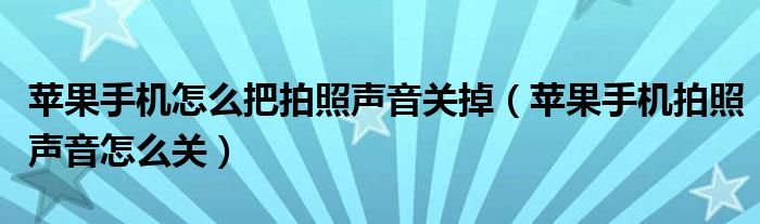苹果手机怎么把拍照声音关掉(苹果手机拍照声音怎么关)