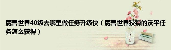 魔兽世界40级去哪里做任务升级快(魔兽世界狡猾的沃平任务怎么获得)